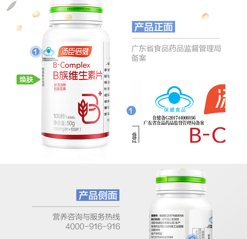 商品名称:汤臣倍健B族维生素片 100片/瓶