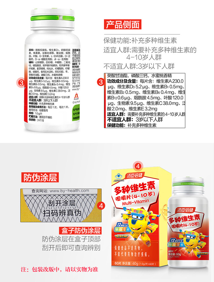 商品名称:汤臣倍健多种维生素咀嚼片(4-10岁)-迪士尼漫威装60片/瓶