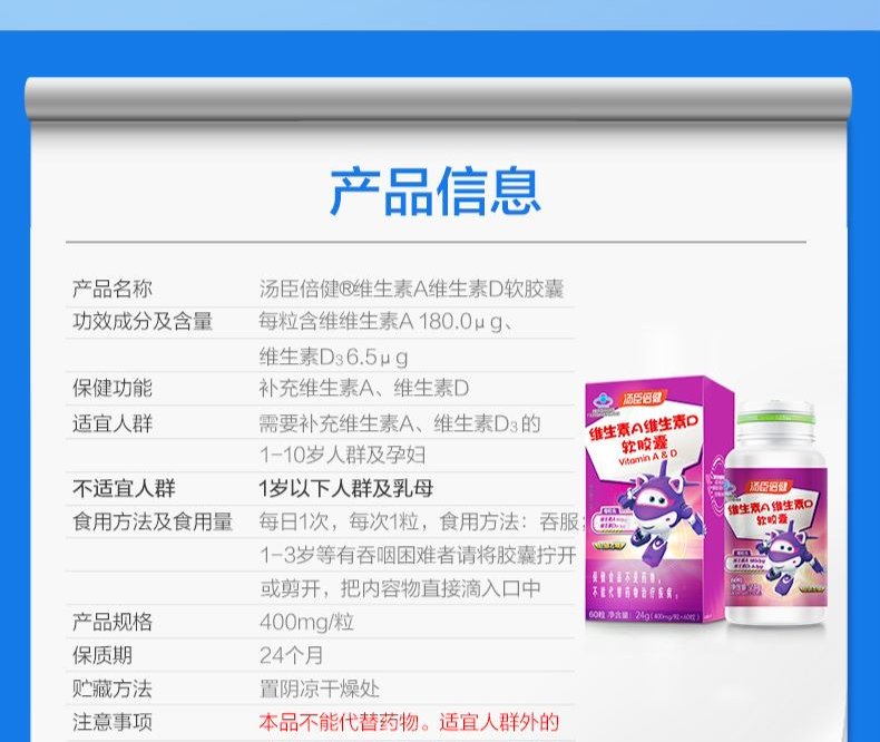 商品名称:汤臣倍健维生素A维生素D软胶囊-迪士尼漫威装60粒/瓶