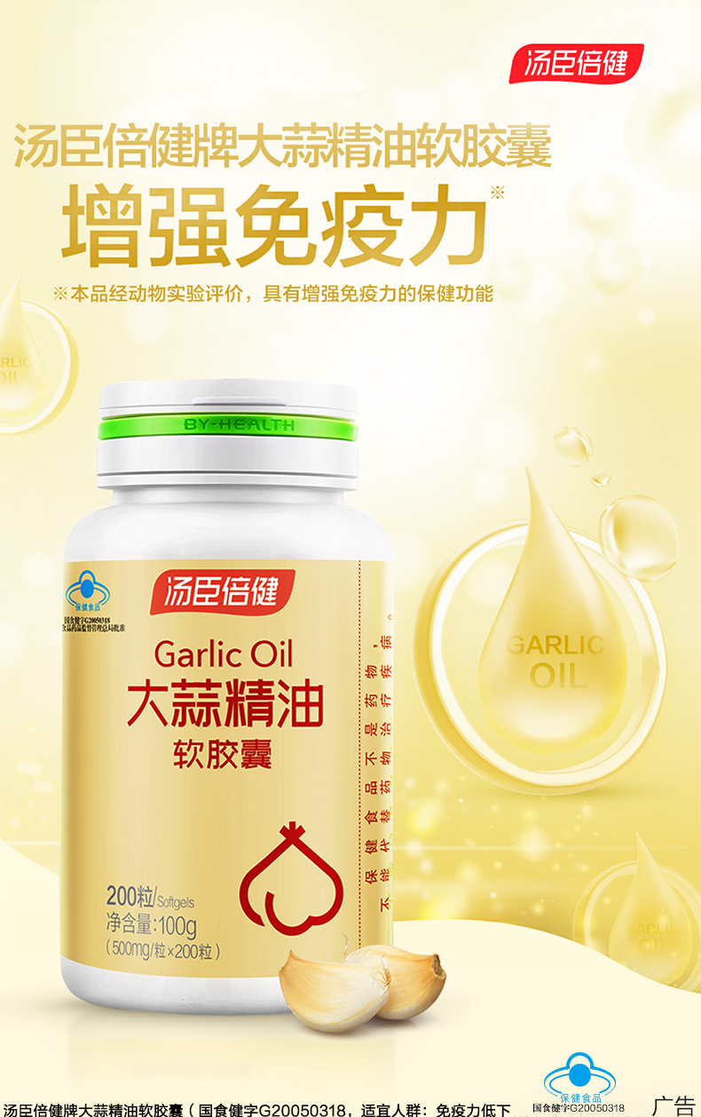 商品名称:汤臣倍健大蒜精油软胶囊200粒/瓶