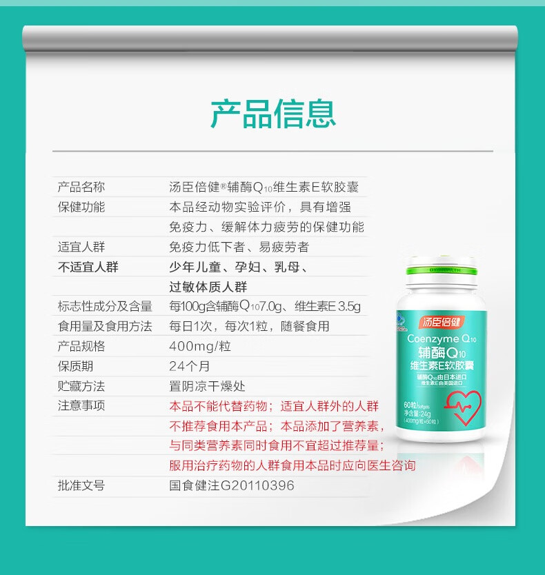 商品名称:汤臣倍健辅酶Q10维生素E软胶囊彩盒装(60粒)