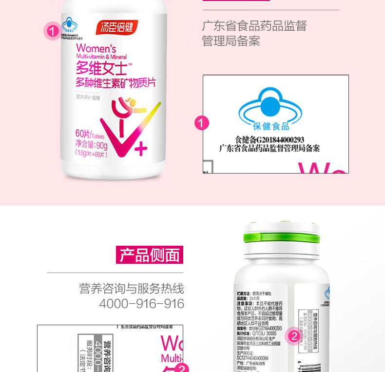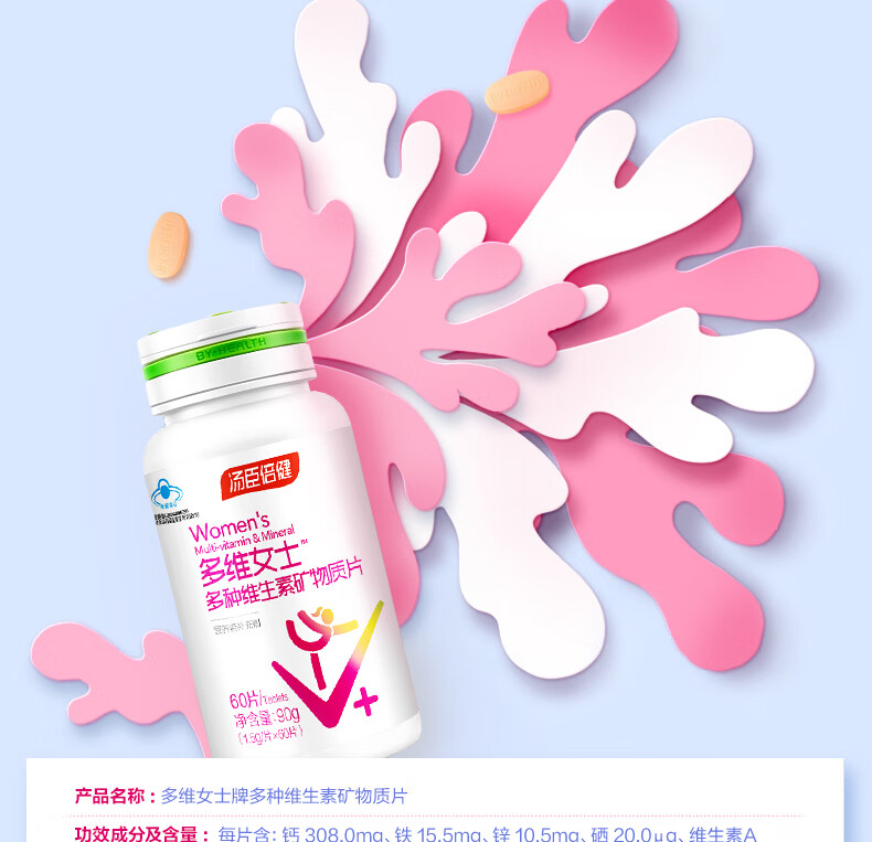 商品名称:汤臣倍健多维女士维生素矿物质片60*2瓶装