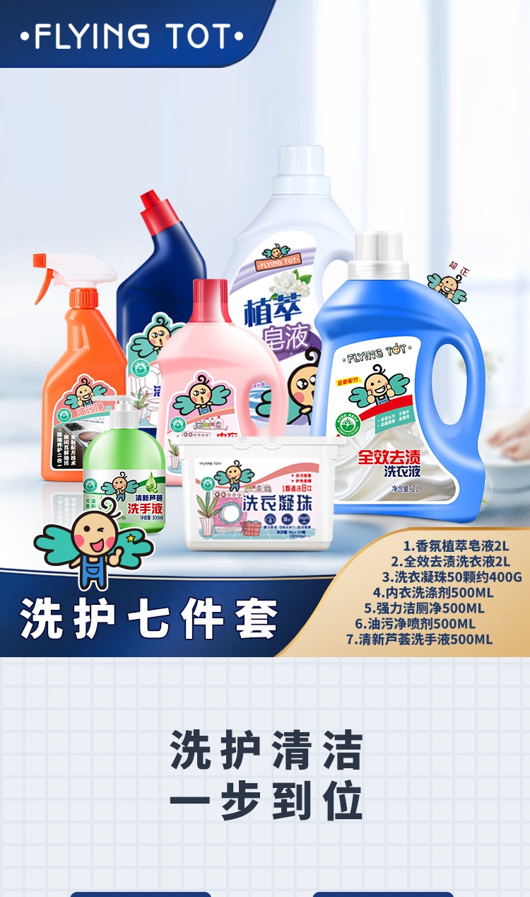 1.香氛植萃皂液2L 2.全效去渍洗衣液2L 3.洗衣凝珠50粒400G 4.内衣洗涤剂500ML 5.强力洁厕净500