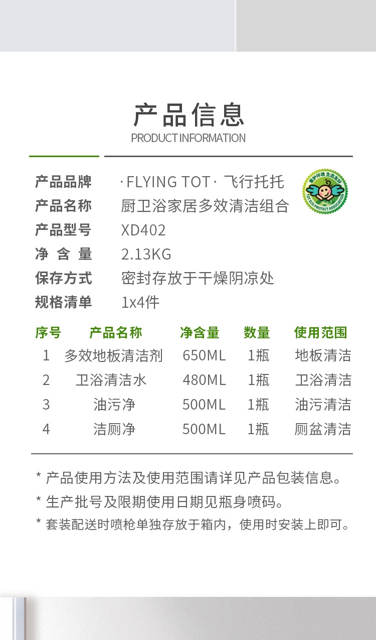 商品名称:FLYING TOT厨卫浴家居多效清洁组合XD402