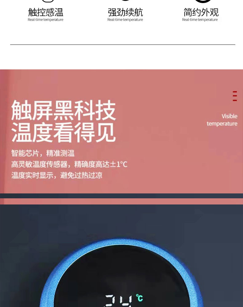 商品名称:悠拓者 高档智能温显商务杯500ml YT-BZ017 黑/白/蓝/金 下单备注颜色