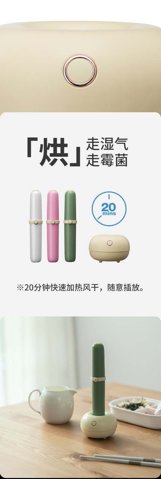 商品名称:火鸡 时尚消毒便携筷含烘干底座套装 P11 松杉绿/珍珠白/霞光粉 下单备注