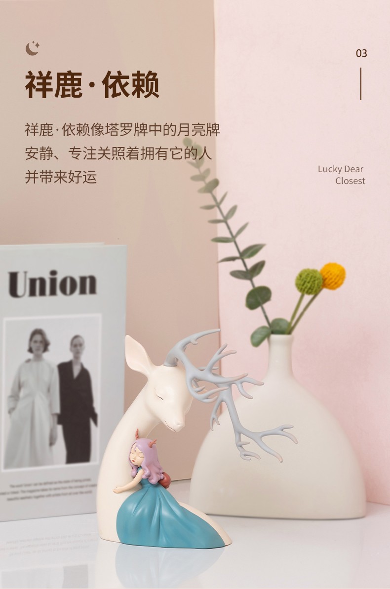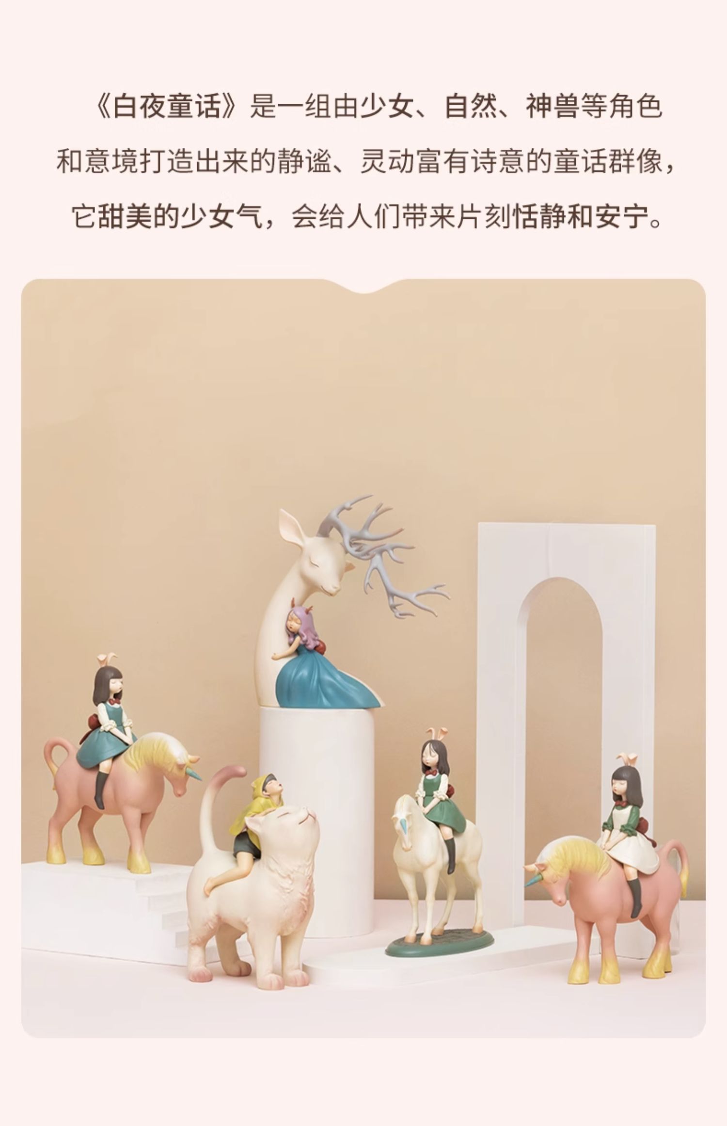 商品名称:KEME LIFE/可米生活 白夜童话办公室解压摆件 猫将军-小/祥鹿依赖-小/祥鹿星河-小-湖光紫/猫黛丽-小/夜行独角兽-小-白色 可选下单备注类型