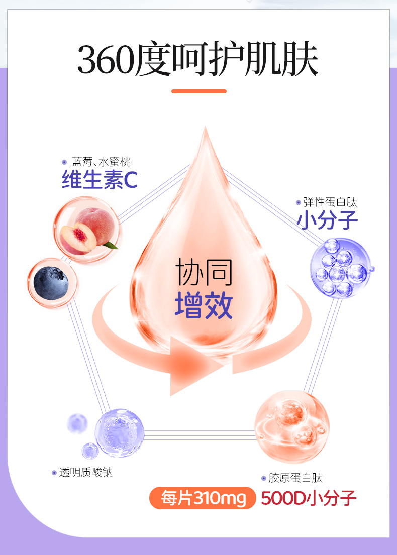亚西亚透明质酸钠胶原蛋白肽焕颜压片糖果 60片
