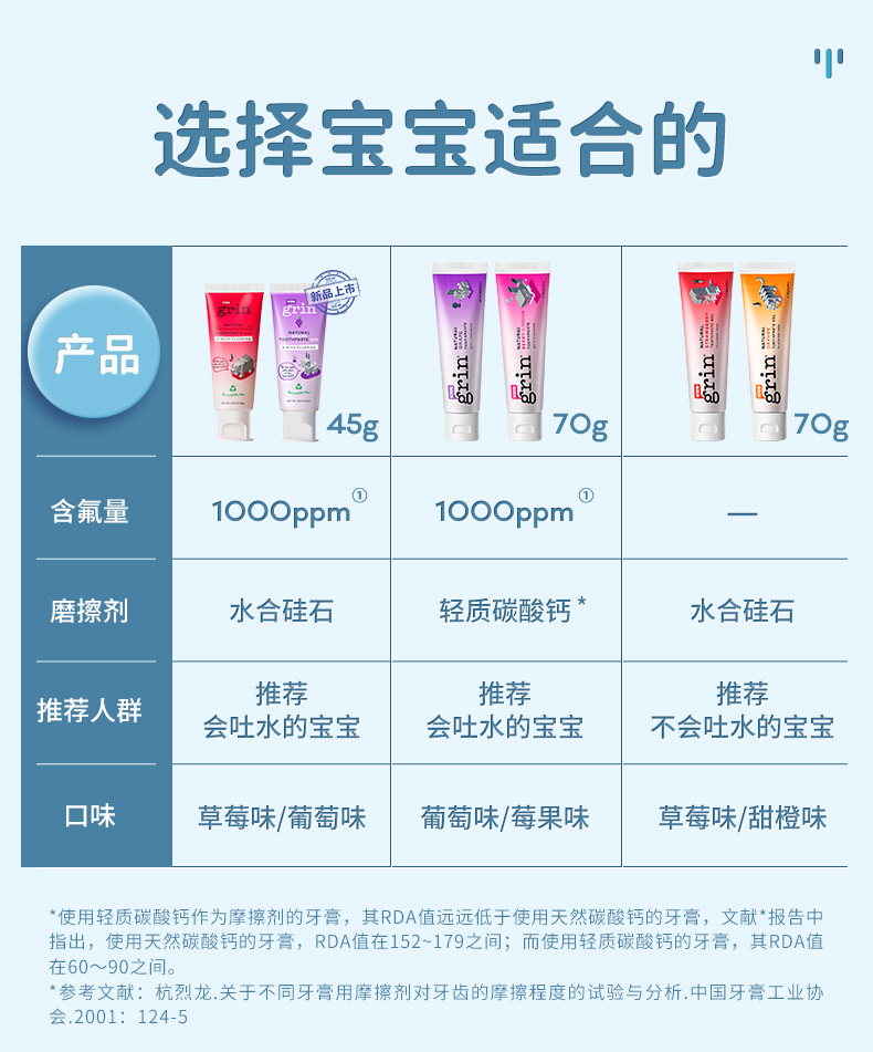 商品名称:grin儿童牙膏 2支*45g(草莓+葡萄味) 婴儿0到-3-6-12岁含氟防蛀