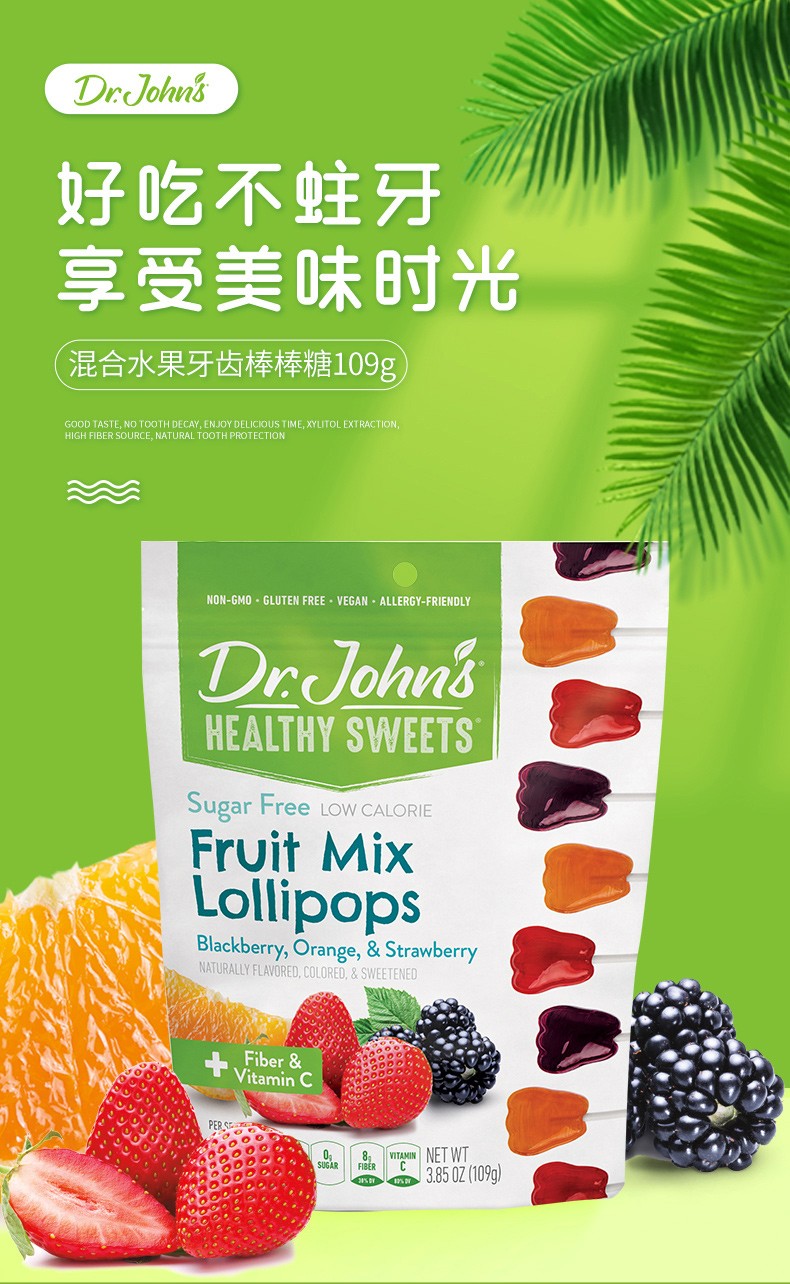 Dr.john's约翰博士新鲜水果牙齿棒棒糖(含维生素C) 109g