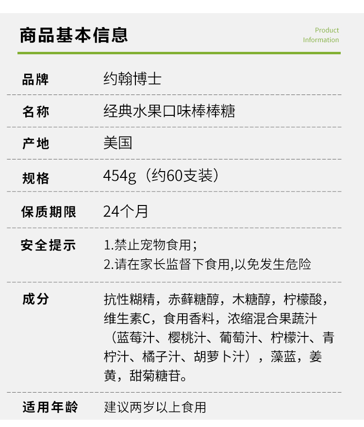 商品名称:Dr.john's约翰博士经典水果牙齿棒棒糖 454g