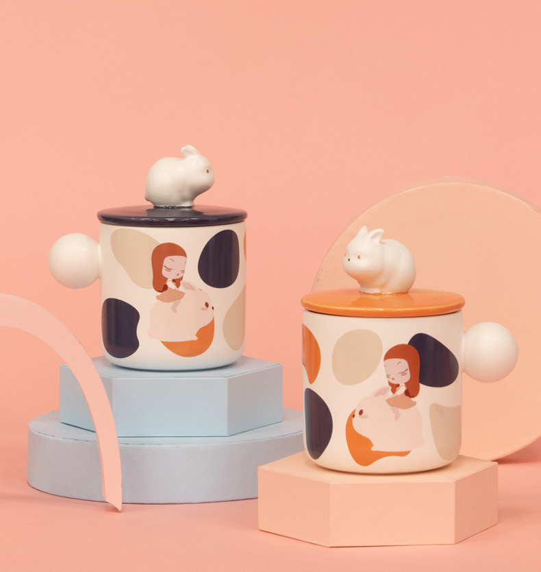 商品名称:KEME LIFE/可米生活 白夜童话珍宝杯ins风陶瓷马克杯月光兔珍宝杯-桔粉兔/猫将军珍宝杯-奶桔猫/骑鲸少女珍宝杯-深蓝鲸 可选下单备注类型