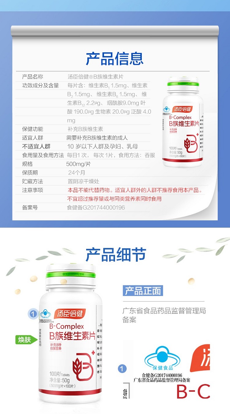 商品名称:汤臣倍健维生素B族片100片/瓶