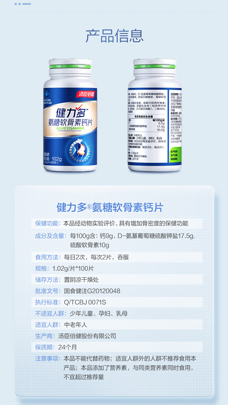 商品名称:汤臣倍健健力多氨糖软骨素钙片70天关爱礼盒装
