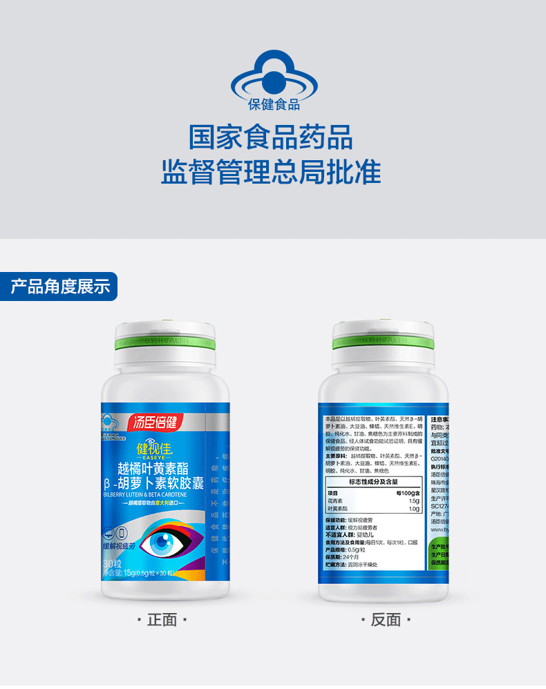 商品名称:汤臣倍健越橘叶黄素酯β-胡萝卜素软胶囊(45)粒*2瓶礼盒装