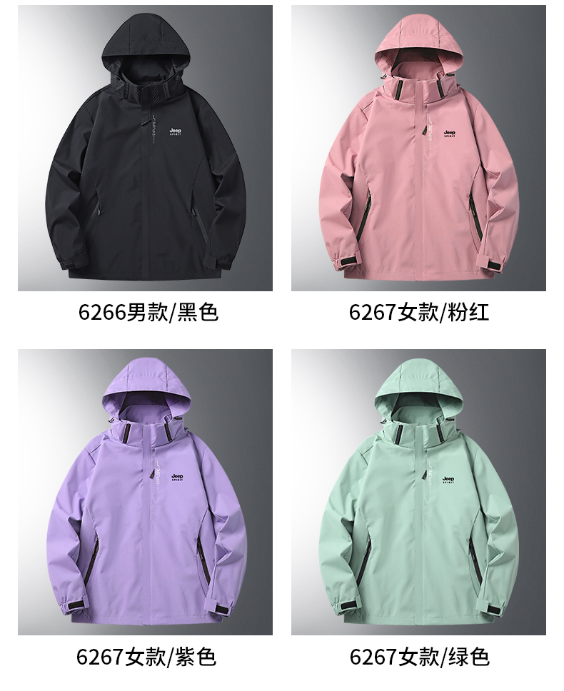 JEEP吉普新款男女款户外冲锋衣防风防雨情侣款冲锋衣外套JPCS6266HX/JPCS6267HX 下单请备注颜色尺码