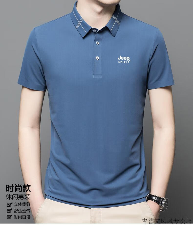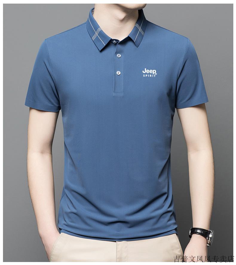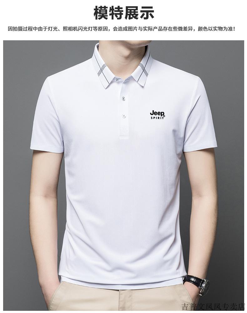 JEEP吉普夏季男士冰丝短袖polo衫翻领弹力凉爽青年时尚T恤衫 JPCS0535HX 黑色/白色/蓝色/绿色 M-4XL 下单请备注颜色尺码