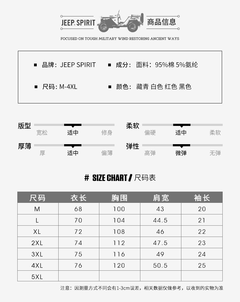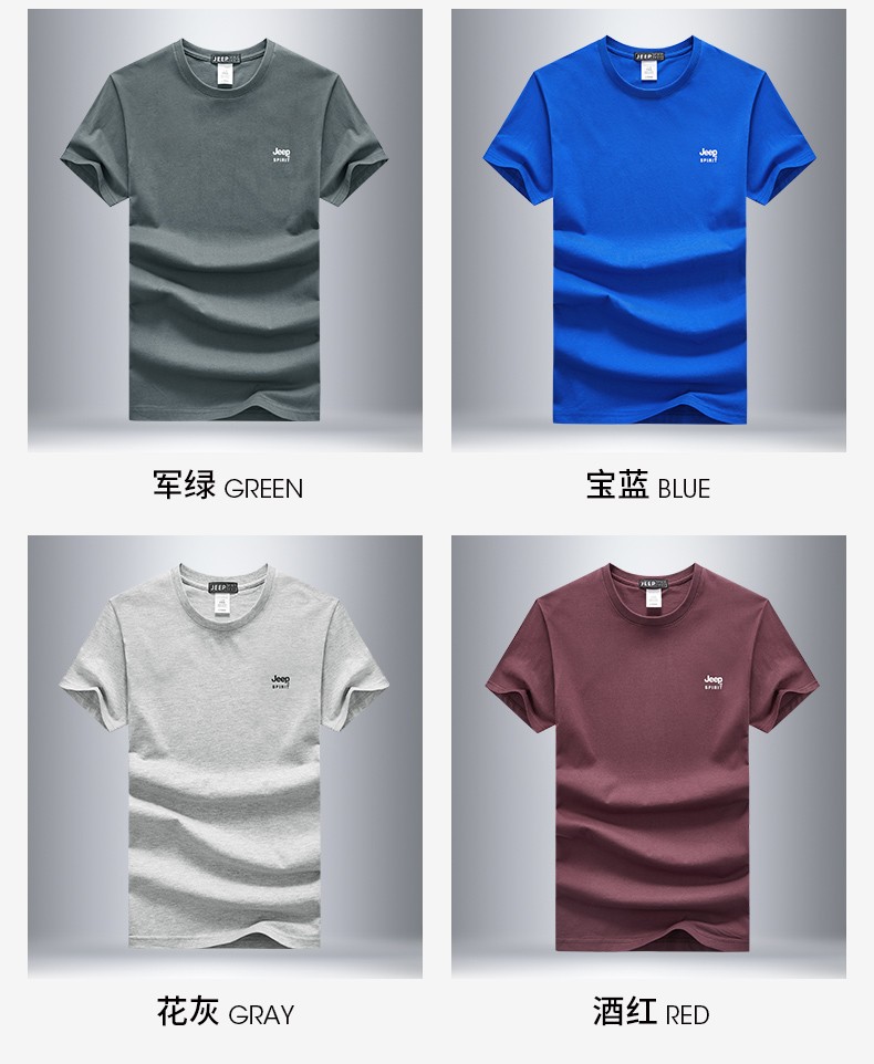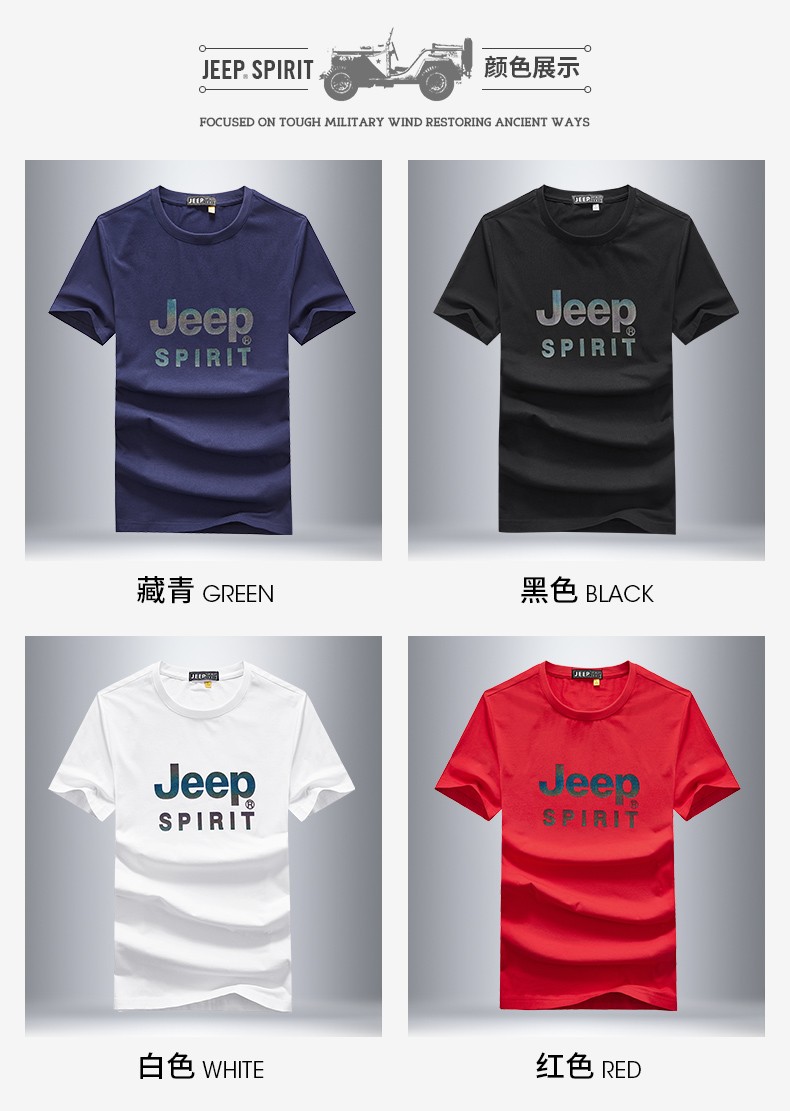商品名称:JEEP吉普新款男士短袖T恤圆领棉质透气弹力时尚青年T恤衫 JPCS2222HX 藏青/黑色/白色/红色 M-4XL下单请备注颜色尺码