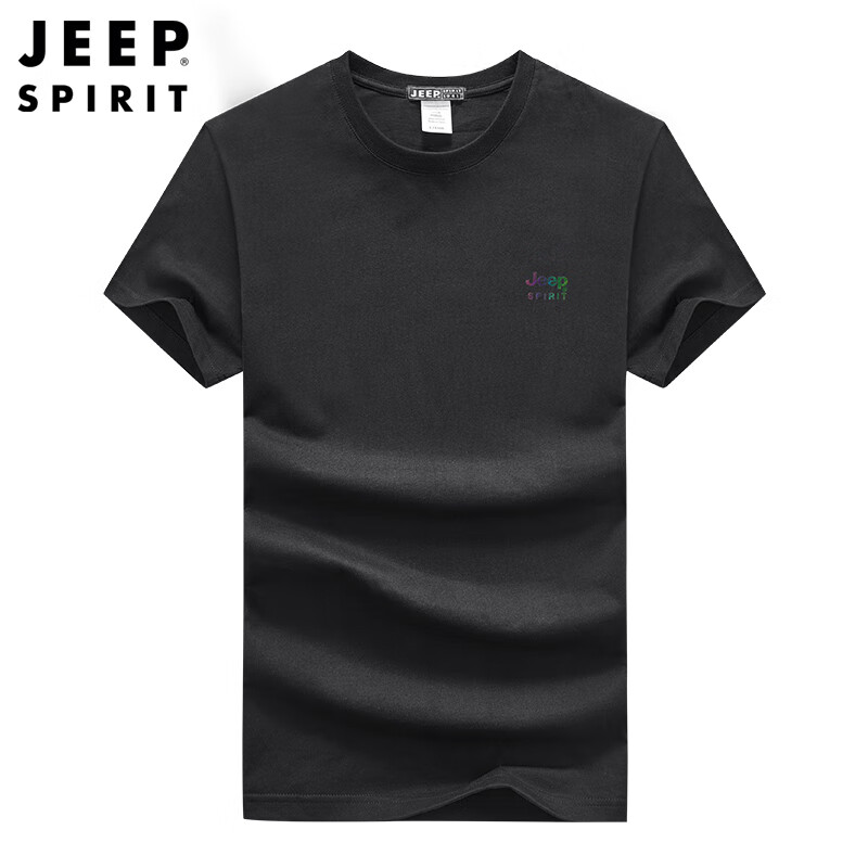 JEEP吉普新款男士短袖T恤圆领棉质透气弹力时尚青年T恤衫 JPCS0013HX 酒红/黑色/深灰/藏青/花灰/宝蓝/红色/白色 M-4XL 下单请备注颜色尺码