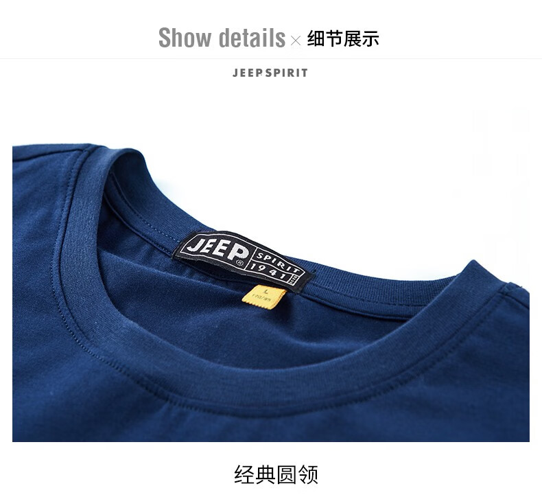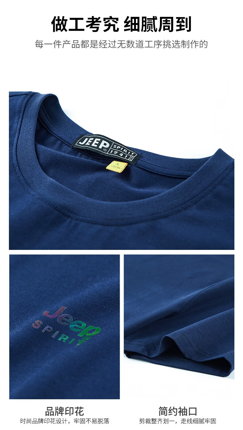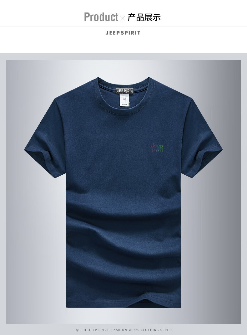 商品名称:JEEP吉普新款男士短袖T恤圆领棉质透气弹力时尚青年T恤衫 JPCS0013HX 酒红/黑色/深灰/藏青/花灰/宝蓝/红色/白色 M-4XL 下单请备注颜色尺码
