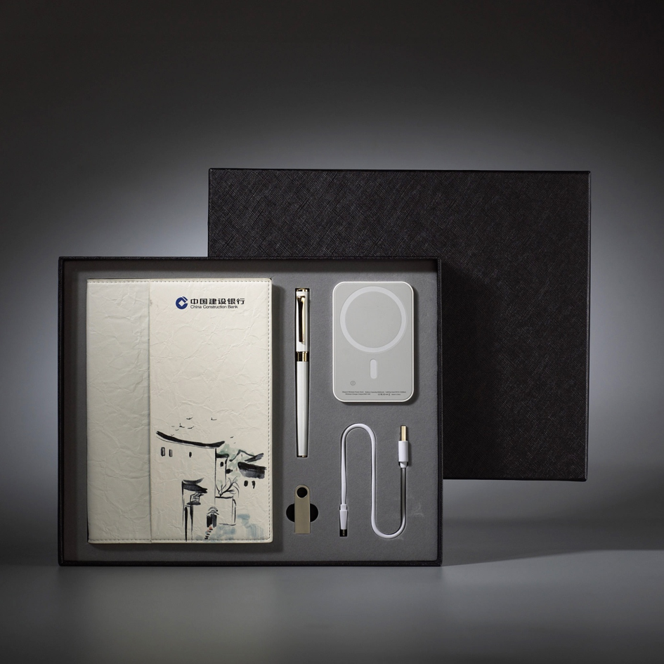 集采 领豪本册 充电宝-4TZ精装本礼盒套装 进口曼顿皮 白色村居款 可定制 不含税运