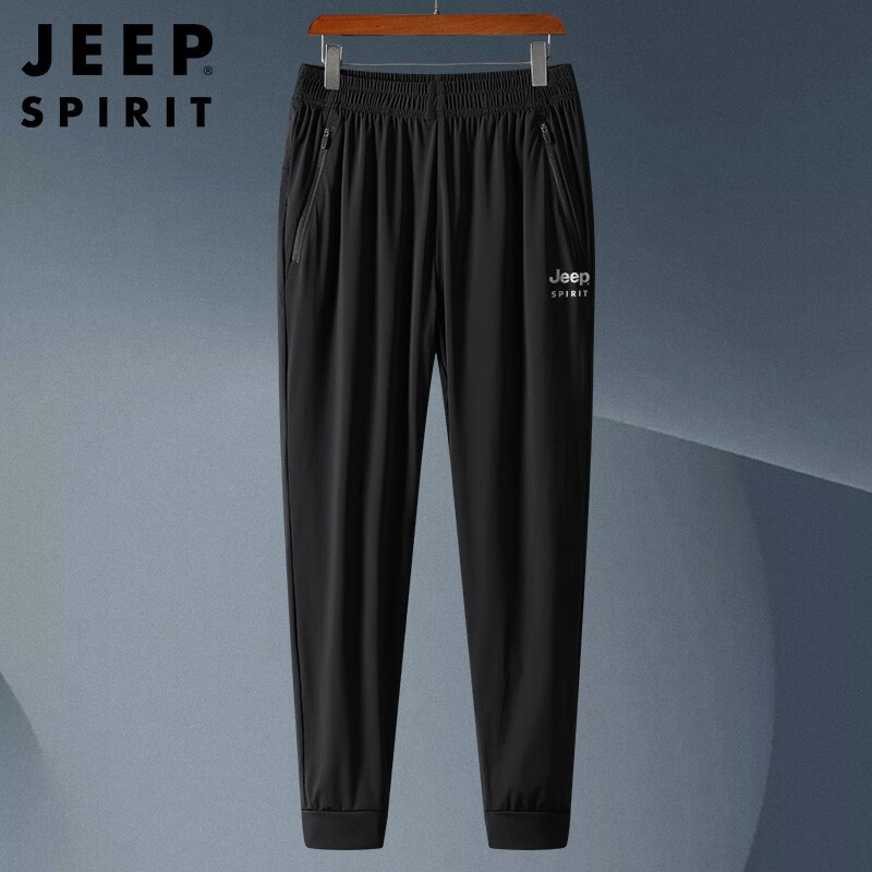 JEEP吉普春夏男士冰丝薄长裤弹力直筒中腰大码男款运动长裤 JPCS12105HL 黑色/深蓝/深灰 M-8XL 下单请备注颜色尺码