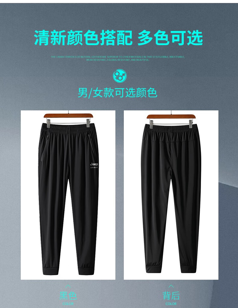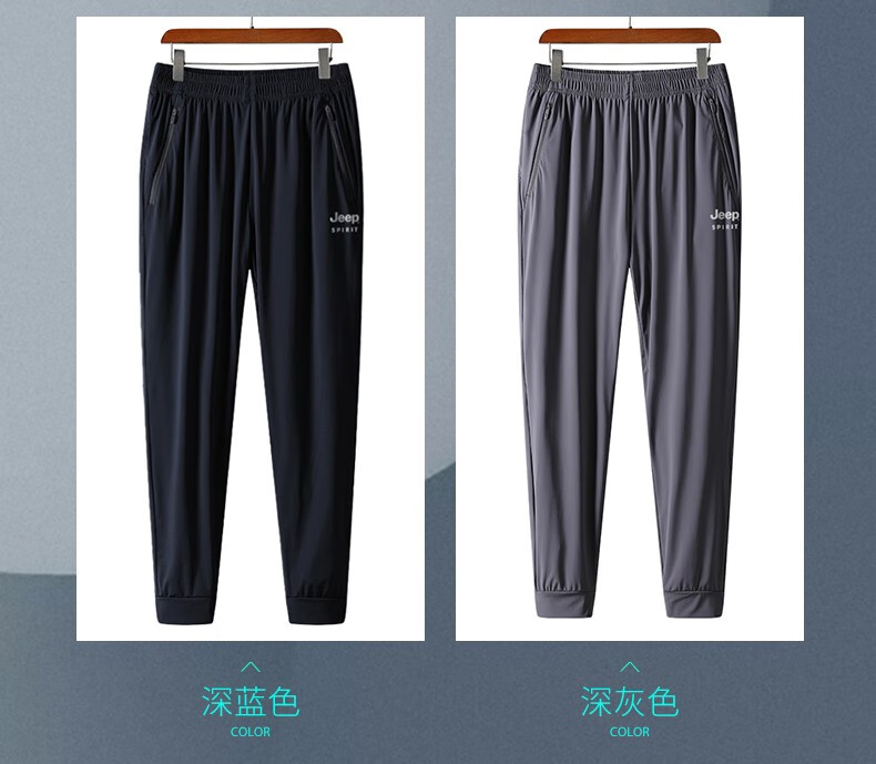 商品名称:JEEP吉普春夏男士冰丝薄长裤弹力直筒中腰大码男款运动长裤 JPCS12105HL 黑色/深蓝/深灰 M-8XL 下单请备注颜色尺码