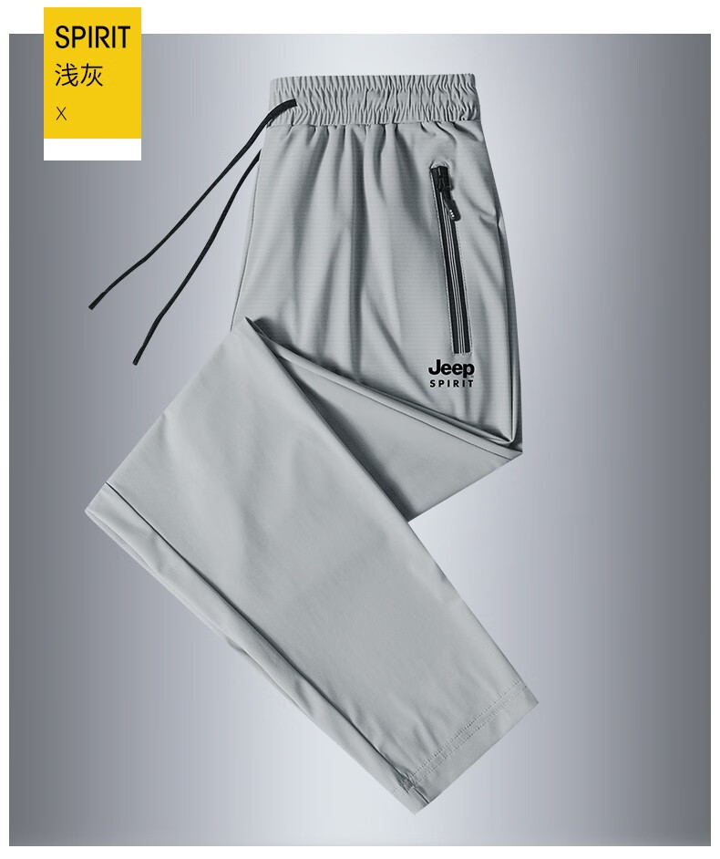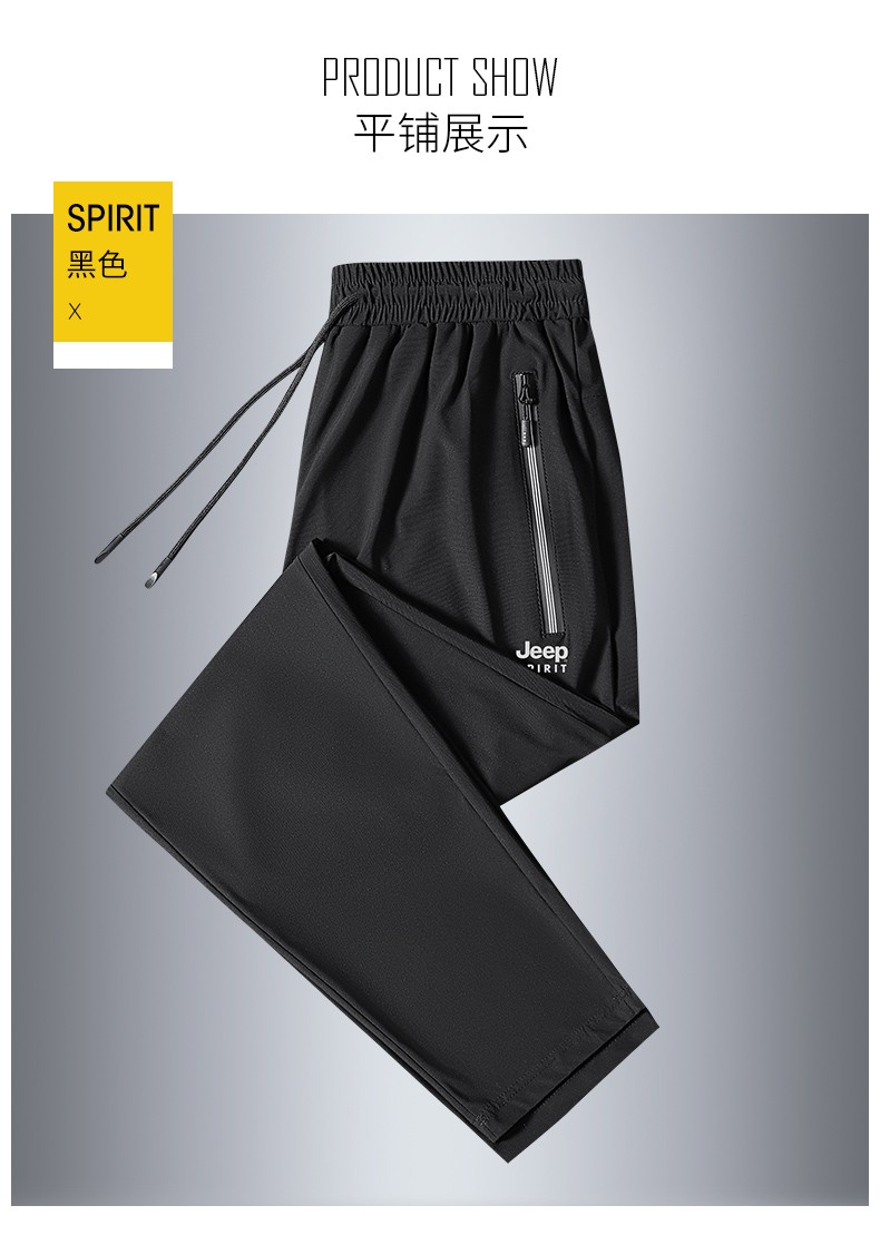 商品名称:JEEP吉普春夏男士冰丝薄长裤弹力直筒中腰大码男款运动长裤 JPCS0128HX 黑色/深灰/浅灰 L-6XL 下单请备注颜色尺码