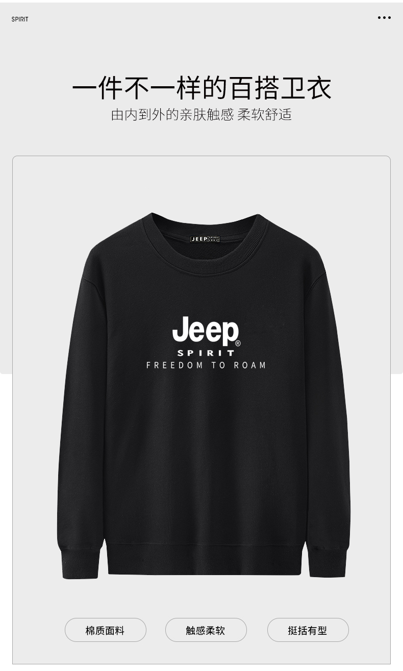 商品名称:JEEP吉普新款男士套头卫衣圆领宽松透气大码男装休闲卫衣打底衫 JPCS315B(加绒款) 黑色/藏青/卡其/深灰 L-5XL 下单请备注颜色尺码