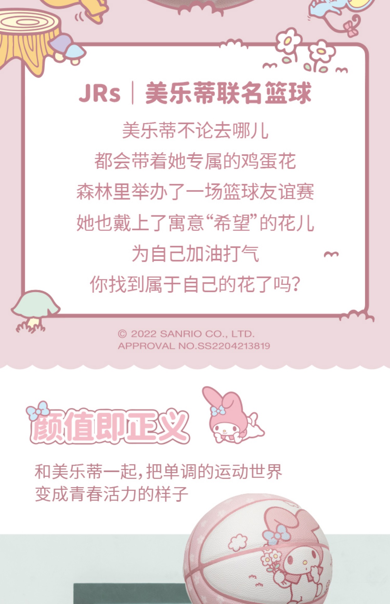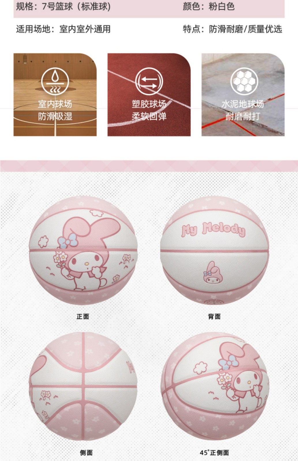 商品名称:JRs Cinnamoroll三丽鸥联名 小花美乐蒂篮球 室内外通用 7号标准球500338