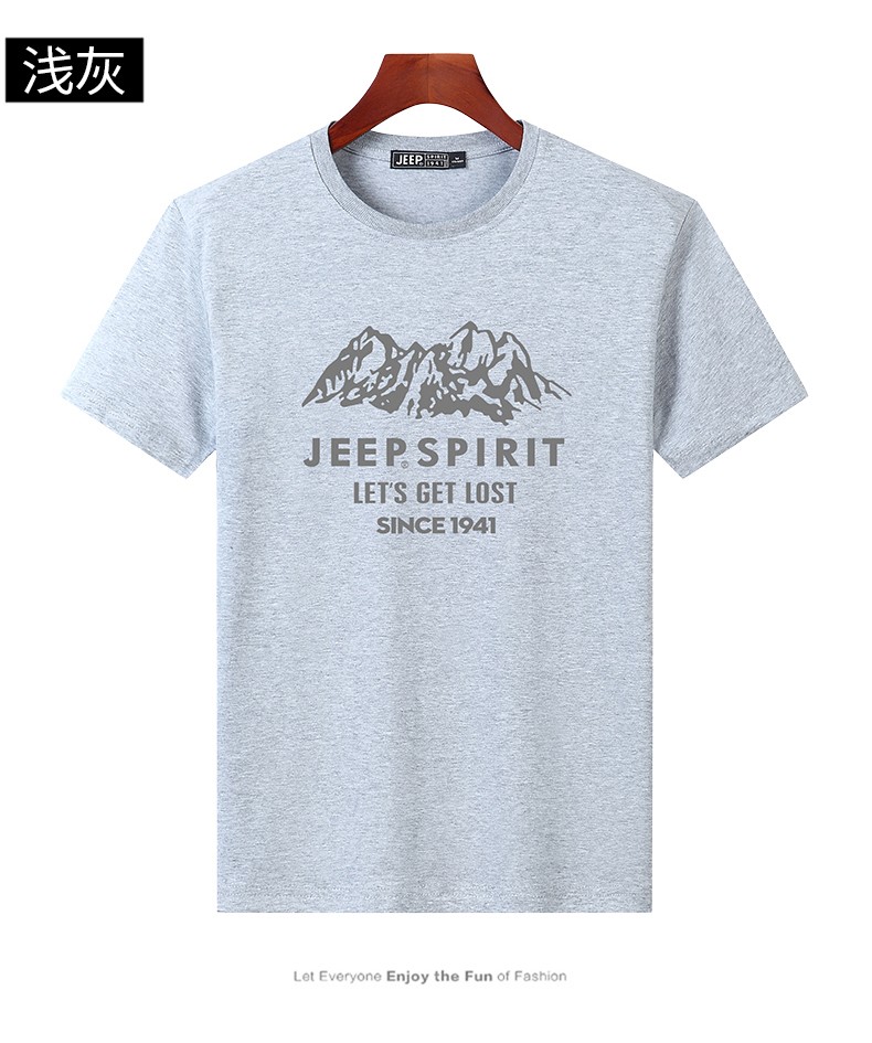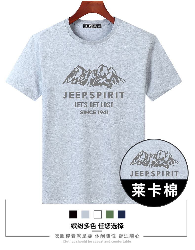 JEEP吉普新款男士短袖T恤圆领棉质透气宽松大码男装休闲T恤衫 JPCS279053HL 黑色/白色/灰色/军绿色/深蓝色 M-6XL 下单请备注颜色尺码