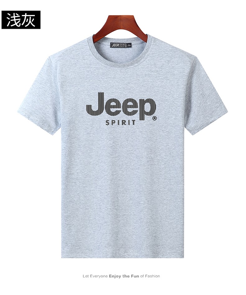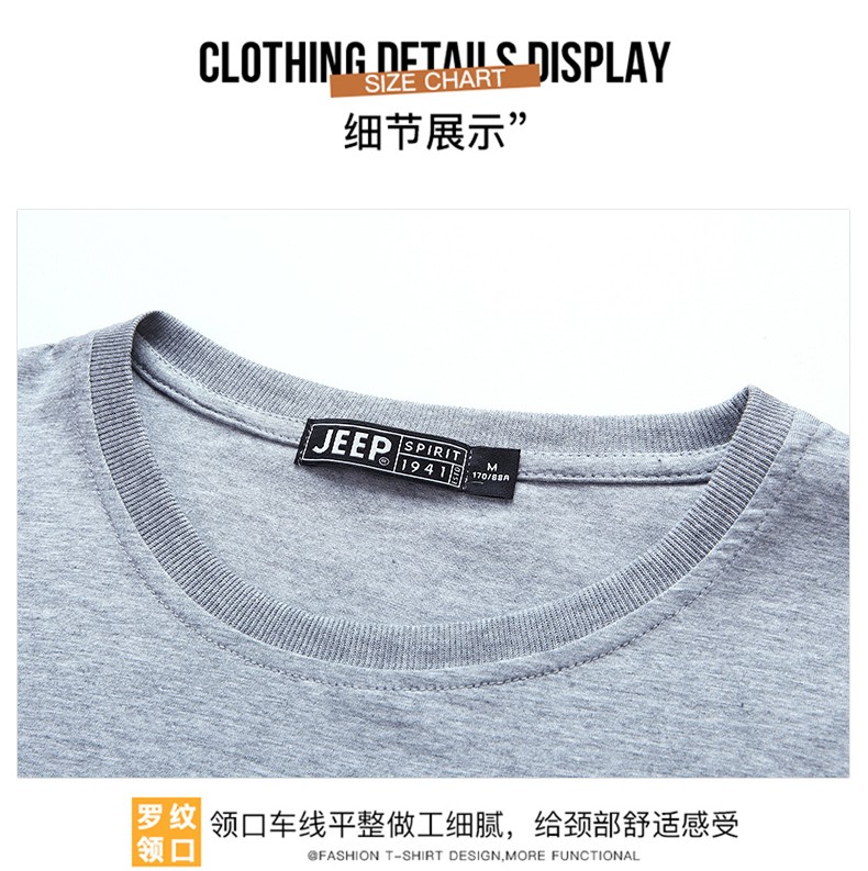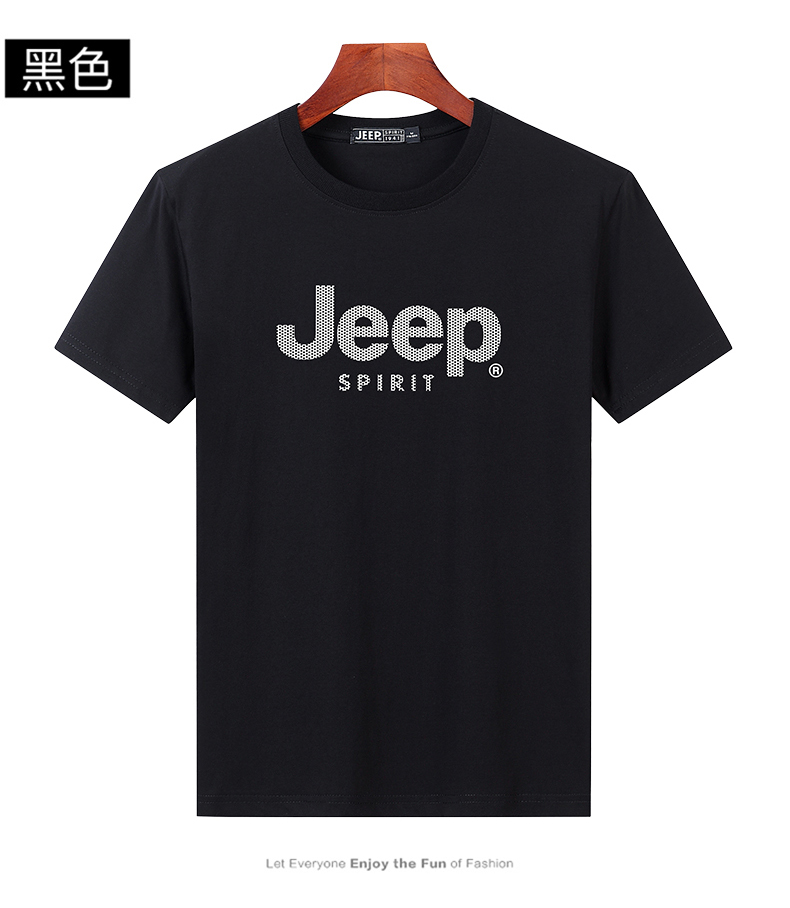 JEEP吉普新款男士短袖T恤圆领棉质透气宽松大码男装休闲T恤衫 JPCS79047HL 黑色/白色/灰色/军绿色/深蓝色 M-6XL 下单请备注颜色尺码