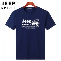 JEEP吉普新款男士短袖T恤圆领棉质透气宽松大码男装休闲T恤衫 JPCS79019HL 黑色/白色/灰色/军绿色/深蓝色 M-6XL 下单请备注颜色尺码