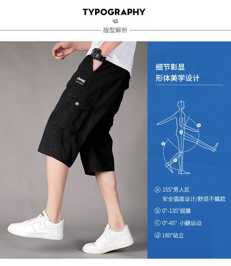 JEEP吉普新款男士短裤多袋工装裤棉质透气大码男装七分裤 JPCS7067HL 黑色/ 卡其色/军绿色/ 灰色/土黄色 XL-6XL 下单请备注颜色尺码