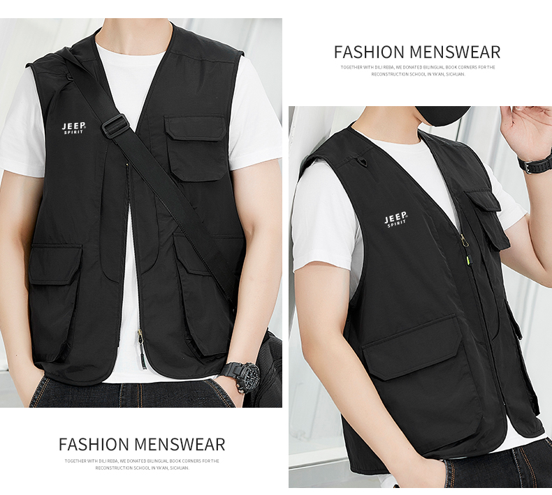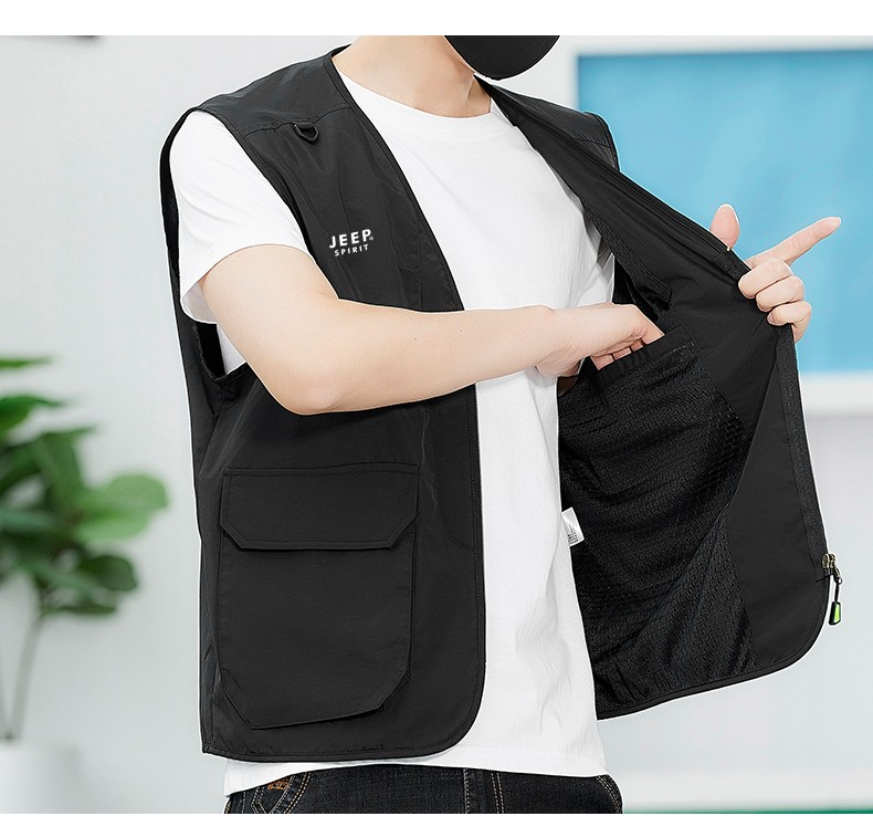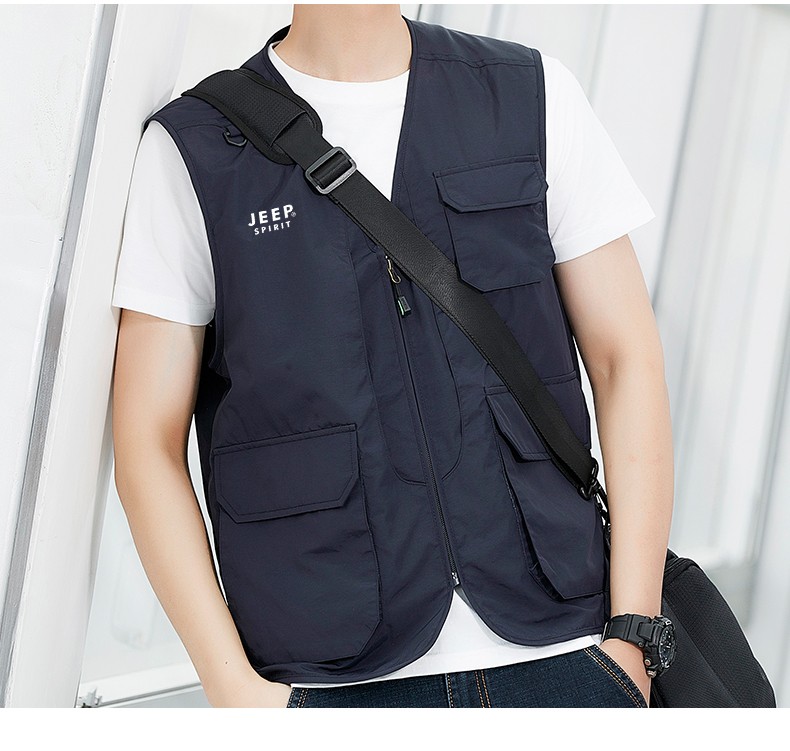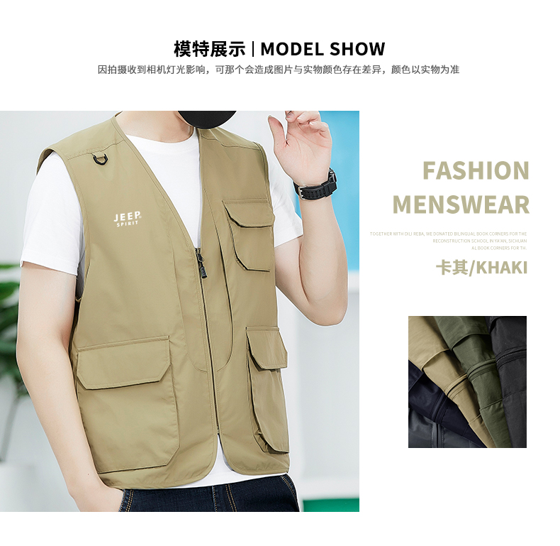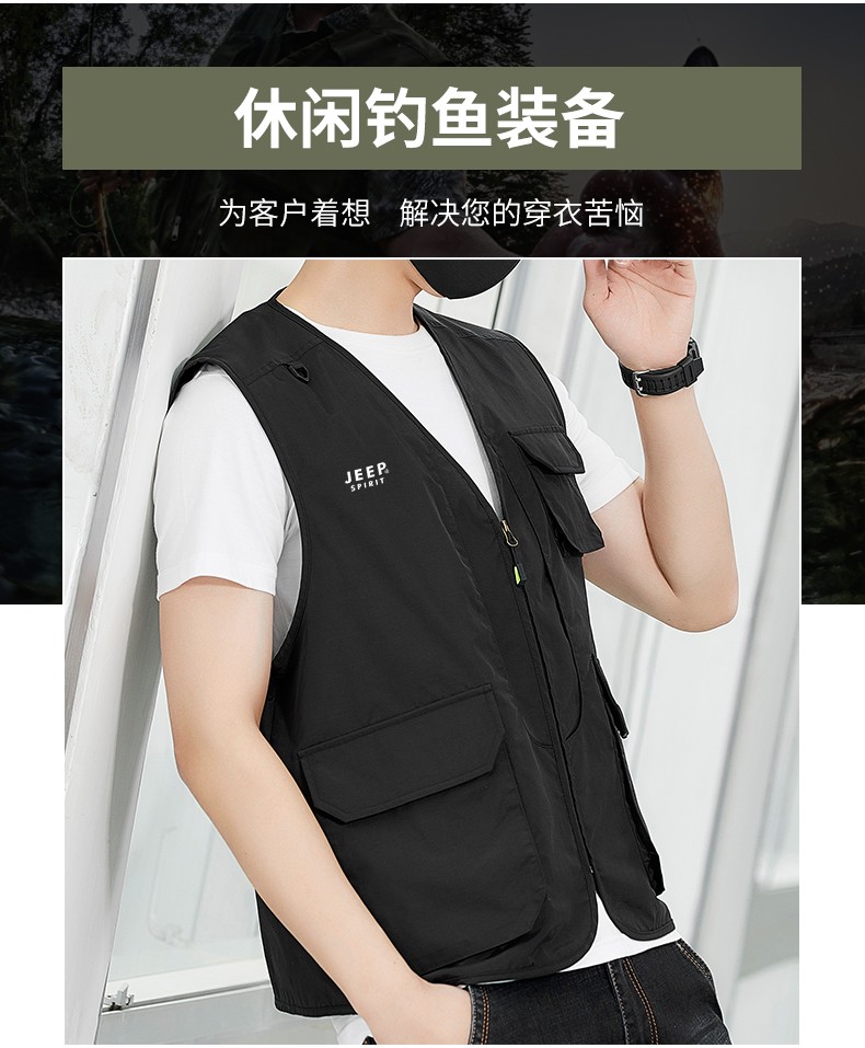商品名称:JEEP吉普新款男士户外马甲速干多袋大码男装钓鱼摄影马甲坎肩 JPCS2201AJ 军绿 /卡其/ 灰色/ 黑色 /深蓝 M-5XL 下单请备注颜色尺码