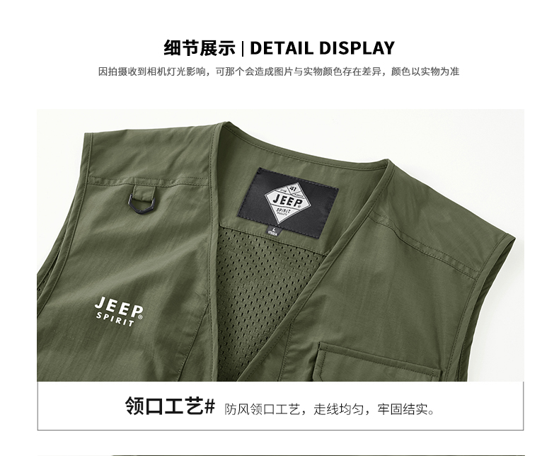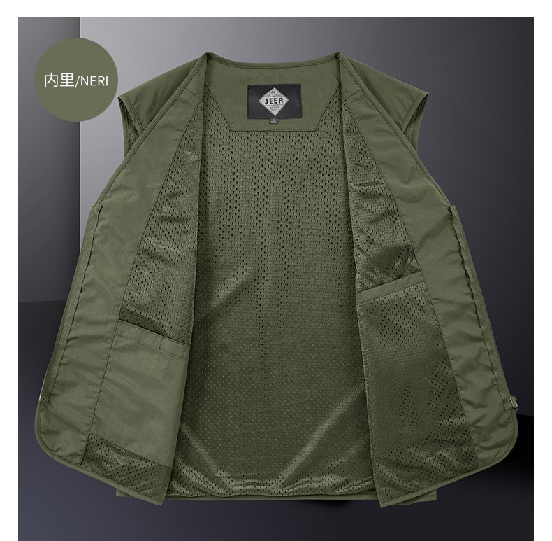 JEEP吉普新款男士户外马甲速干多袋大码男装钓鱼摄影马甲坎肩 JPCS2201AJ 军绿 /卡其/ 灰色/ 黑色 /深蓝 M-5XL 下单请备注颜色尺码
