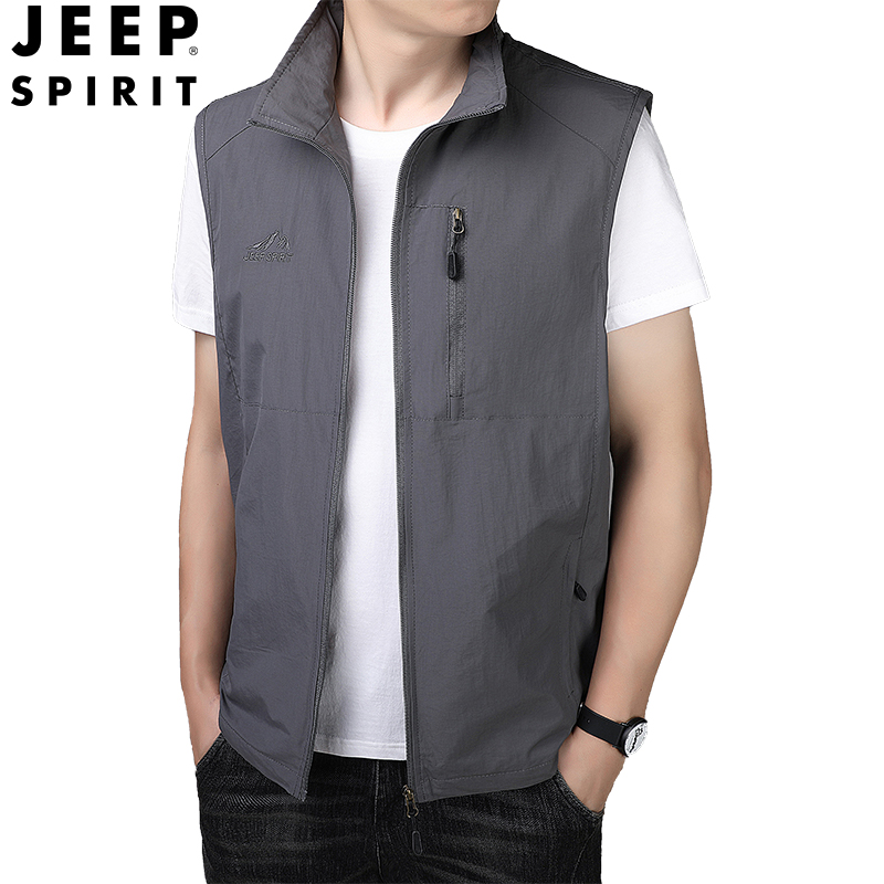 JEEP吉普新款男士户外马甲速干多袋大码男装钓鱼摄影马甲坎肩 JPCS7168HL 黑色/ 卡其/ 深蓝 /军绿 /深灰 M-5XL 下单请备注颜色尺码
