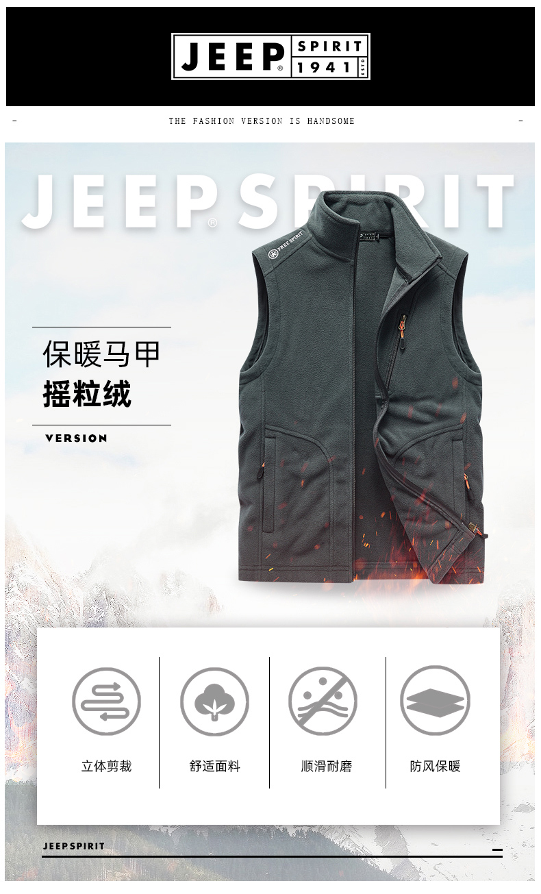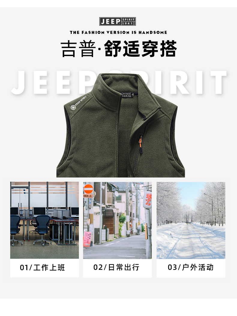 商品名称:JEEP吉普新款男士抓绒衣马甲立领弹力宽松透气大码户外坎肩 JPCS2166HL 军绿/ 黑色/ 深蓝 /深灰 M-5XL 下单请备注颜色尺码