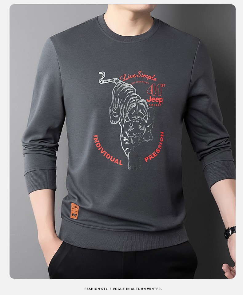 JEEP吉普新款男士长袖卫衣圆领套头宽松大码男休闲卫衣打底衫 JPCS8516Z 宝蓝/ 中兰 /碳灰/ 浅灰 M-4XL 下单请备注颜色尺码