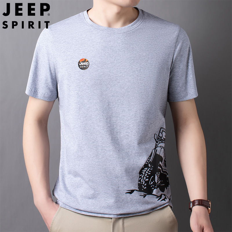 JEEP吉普新款男士短袖T恤圆领印花透气宽松大码休闲T恤衫 JPCS1705YL 黑色/ 白色 /灰色 M-3XL 下单请备注颜色尺码