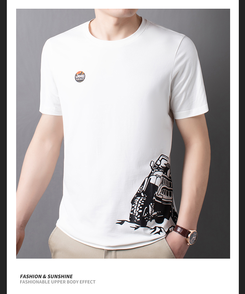 商品名称:JEEP吉普新款男士短袖T恤圆领印花透气宽松大码休闲T恤衫 JPCS1705YL 黑色/ 白色 /灰色 M-3XL 下单请备注颜色尺码