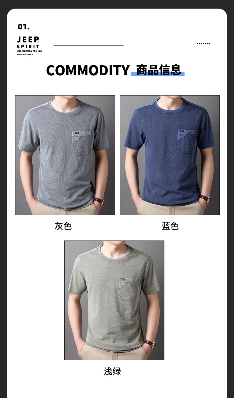 商品名称:JEEP吉普新款男士短袖T恤圆领套头宽松大码男装休闲T恤衫 JPCS2867YL 灰色/ 蓝色 /浅绿 M-3XL 下单请备注颜色尺码
