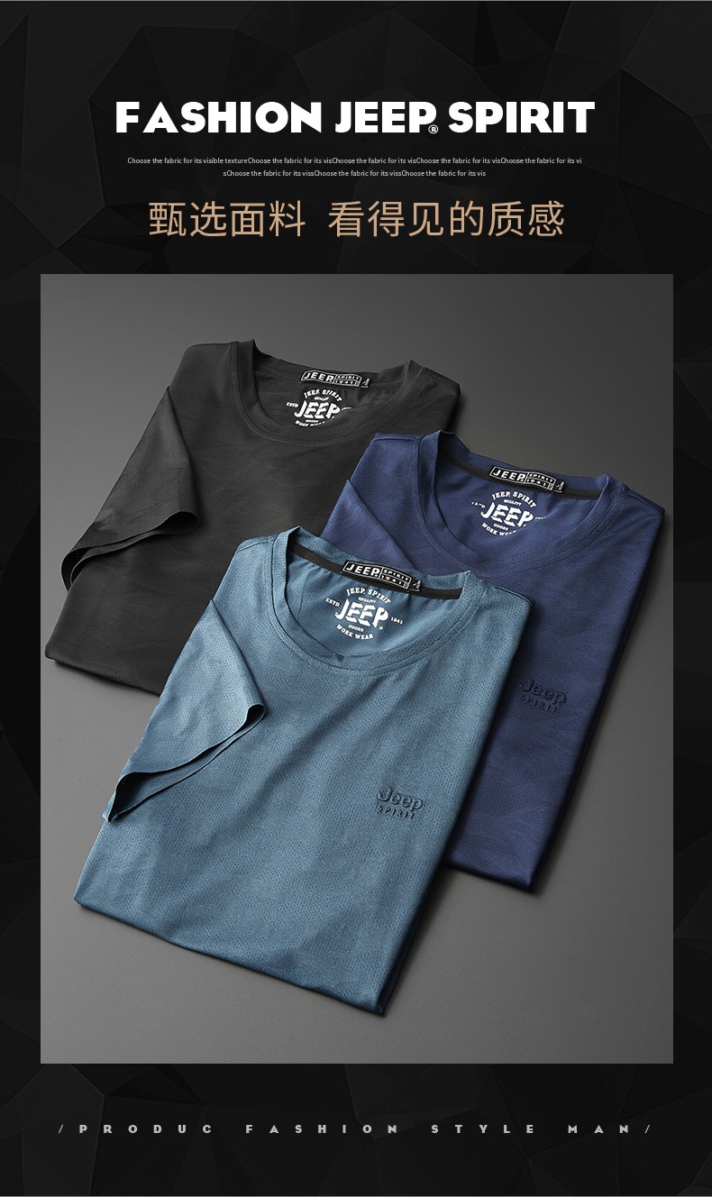 商品名称:JEEP吉普新款男士速干短袖T恤圆领宽松透气大码男装休闲T恤衫 JPCS1697YL 宝蓝 /黑色 /浅绿 M-3XL 下单请备注颜色尺码