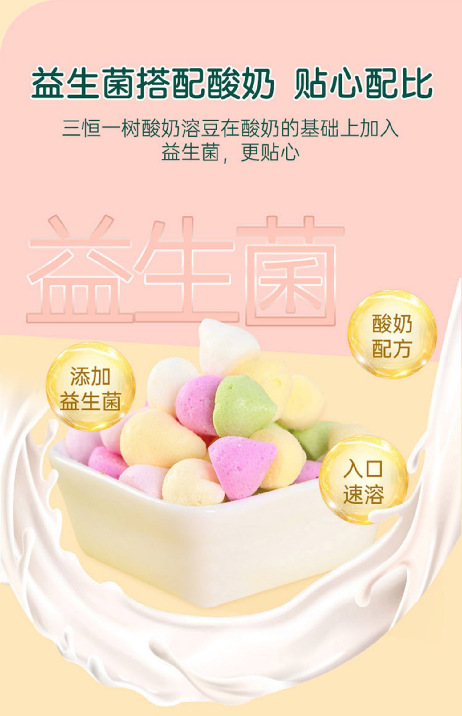 商品名称:三恒一树 益生菌酸奶溶溶豆 4盒*18g 火龙果/原味/香蕉 可选下单备注口味
