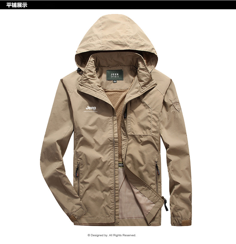 商品名称:JEEP吉普新款男士户外冲锋夹克防风连帽宽松弹力大码男装休闲夹克 JPCS3002HL 黑色/ 军绿 /卡其 /深蓝 M-5XL 下单请备注颜色尺码