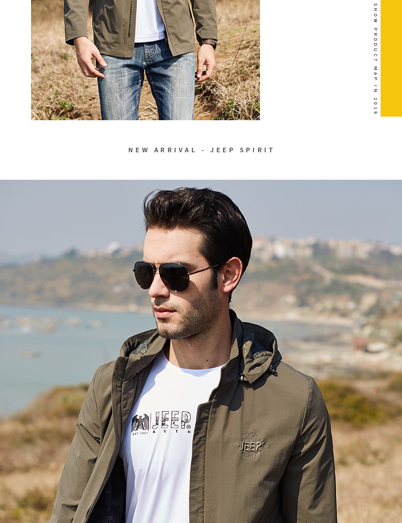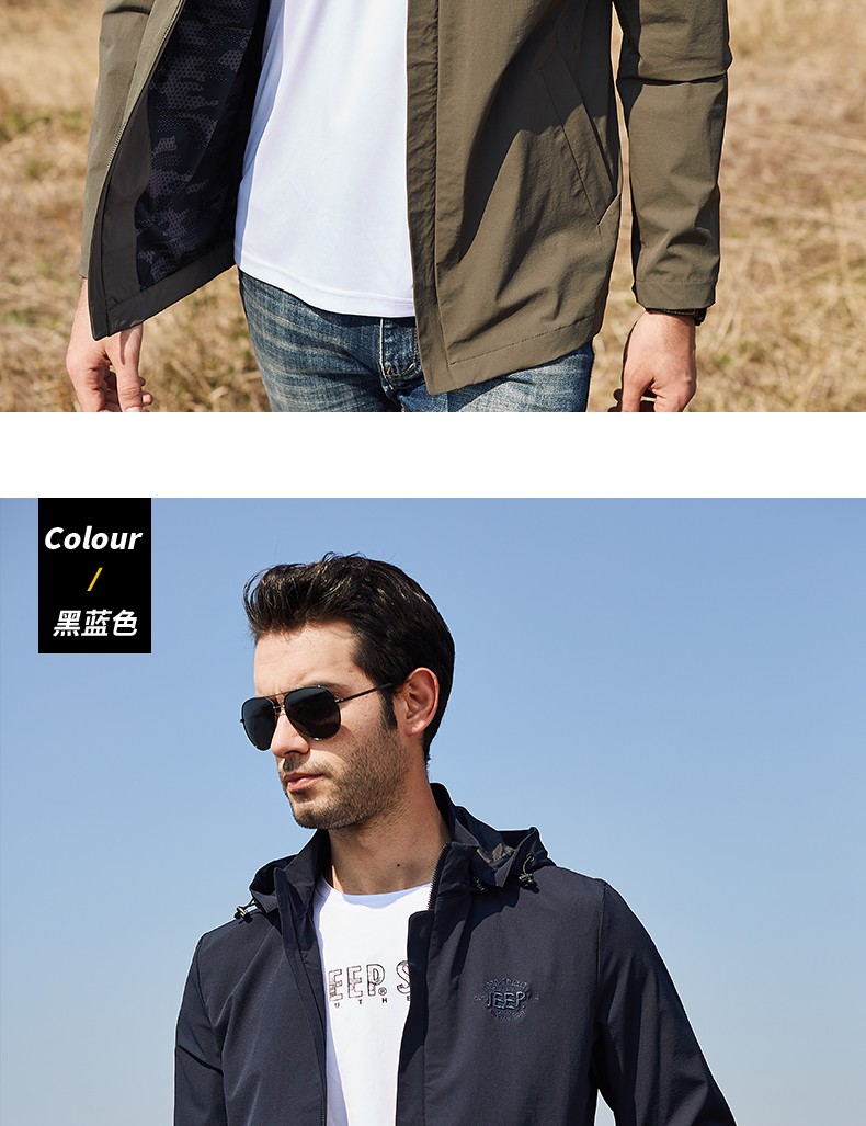 商品名称:JEEP吉普新款男士户外锋夹克防风连帽宽松弹力大码男装休闲夹克 JPCS2753S 黑蓝/ 军绿/ 铁灰 M-3XL 下单请备注颜色尺码