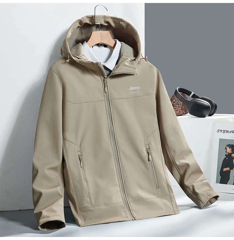 商品名称:JEEP吉普新款男士户外冲锋衣软壳单件套防风大码户外夹克外套JPCS7051HL 黑色 /藏蓝 /深灰 /卡其 L-5XL 下单请备注颜色尺码
