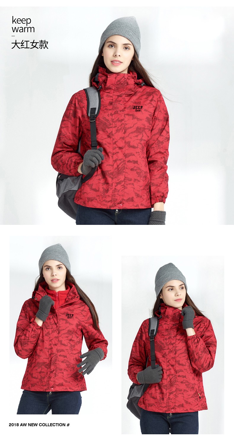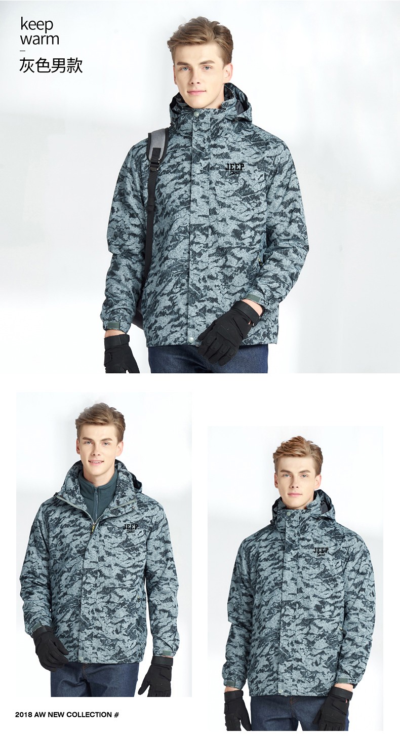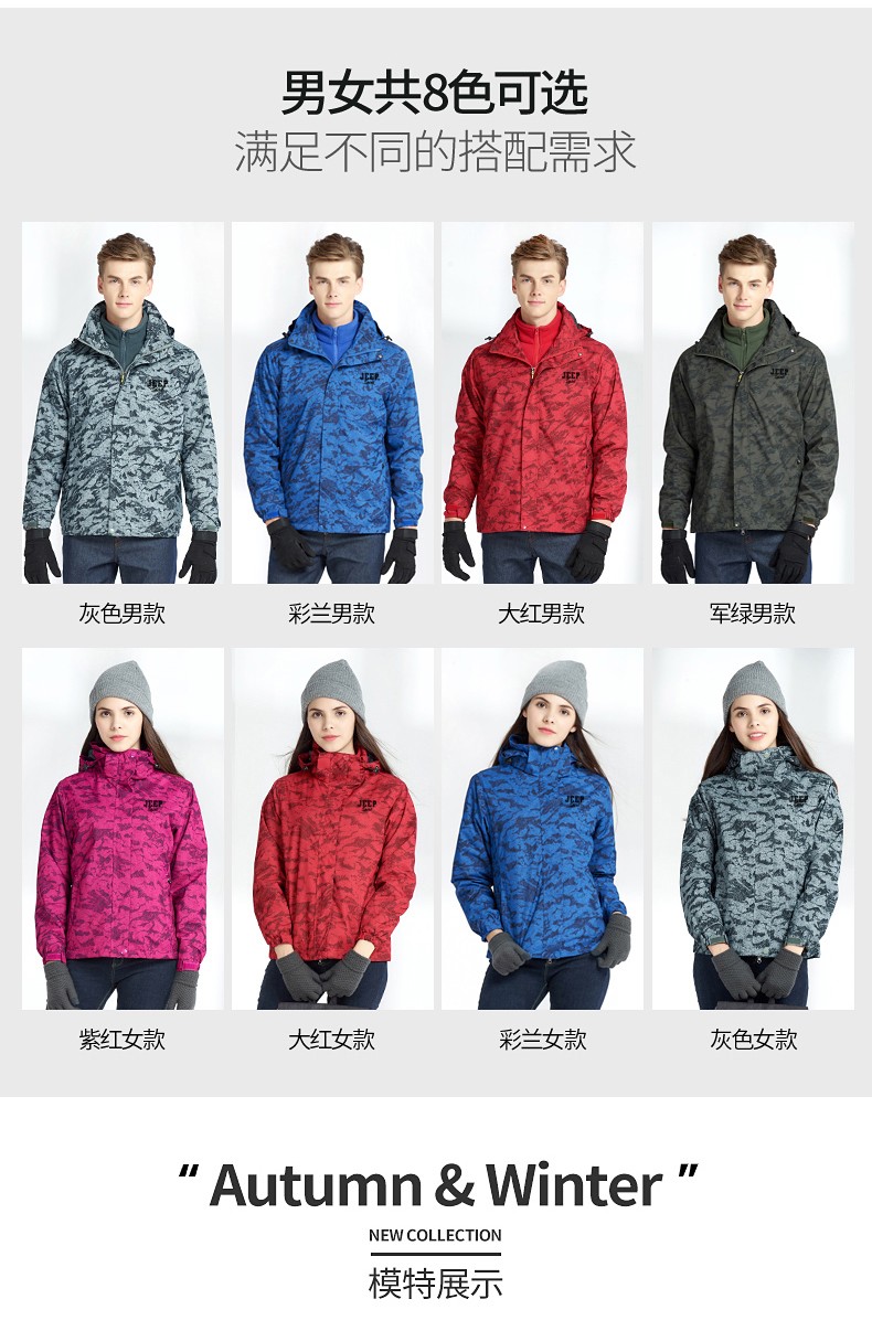 JEEP吉普新款男女三合一冲锋衣两件套内胆抓绒衣情侣款冲锋衣外套 JPCS1004HL(男)/JPCS1004BHL(女)下单请备注颜色尺码