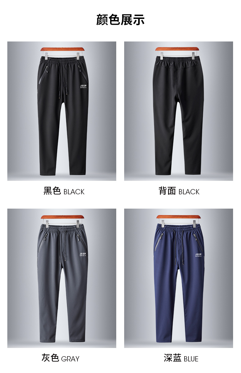 商品名称:JEEP吉普新款男士户外速干长裤弹力束口中腰大码男裤运动裤 JPCS9933HX 黑色 /深蓝/ 深灰 M-5XL 下单请备注颜色尺码