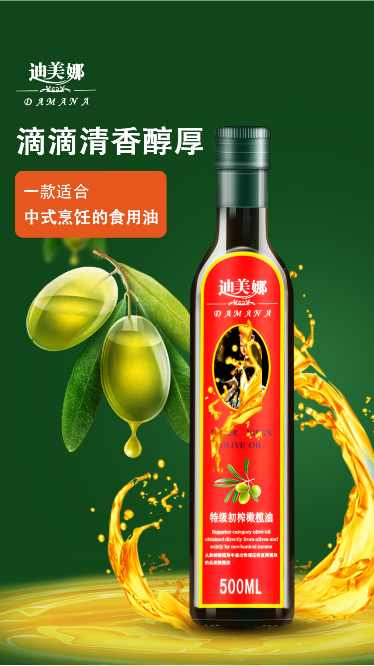 商品名称:迪美娜特级初榨橄榄油裸瓶 500毫升